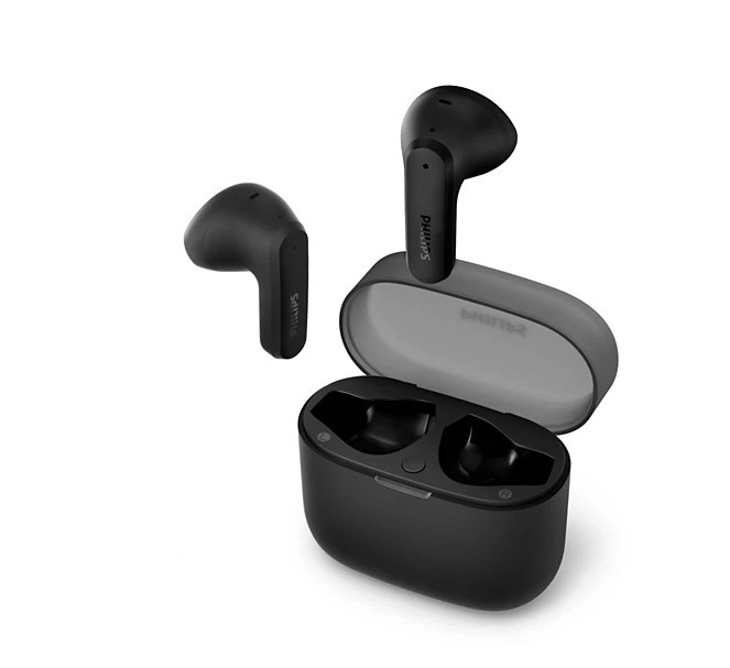 Looking for comfortable wireless earbuds without pressure in the ear canal? These PHILIPS true wireless earbuds sit in the outer ear, feature slim stems for a secure fit, and thanks to 13 mm drivers they sound warm, natural, and with pronounced bass. The Dynamic Bass function boosts low frequencies even at quiet listening levels.