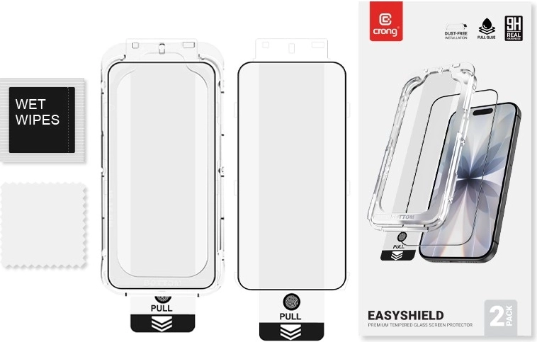 EasyShield 2-Pack is an ideal choice for anyone who wants simple and effective display protection. The 9H thickness and hardness protect against scratches, the black frame finish matches the display, and the full-surface adhesive guarantees excellent adhesion without rainbow effects. The edge-to-edge design covers the entire display area, while the oleophobic layer reduces smudges and fingerprints for a clean view.