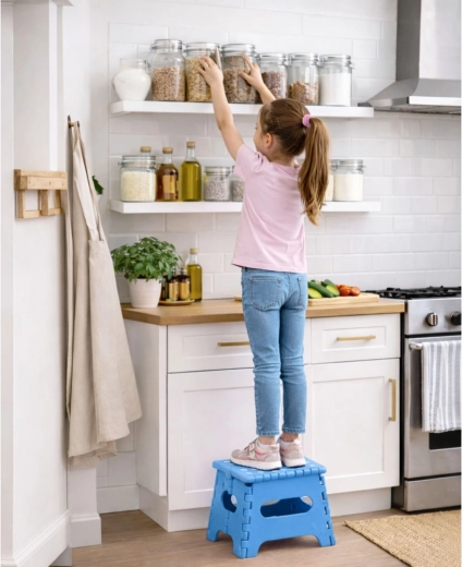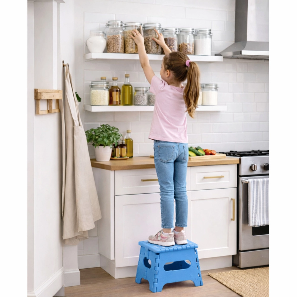A practical folding stool ideal for home and travel. It offers a stable support, a non-slip surface, and easy carrying thanks to the integrated handle. Its folding design saves space and suits the kitchen, bathroom, kids’ room, and camping.