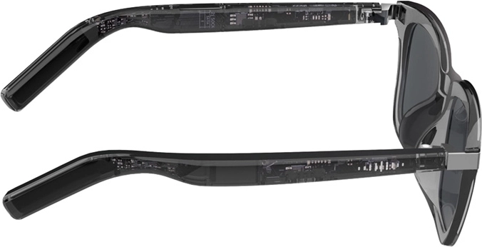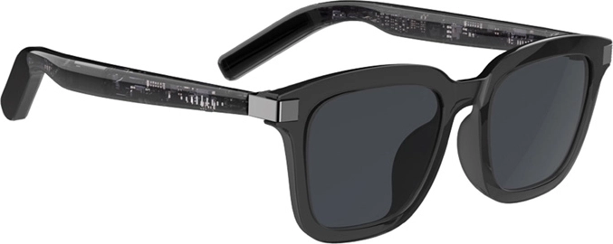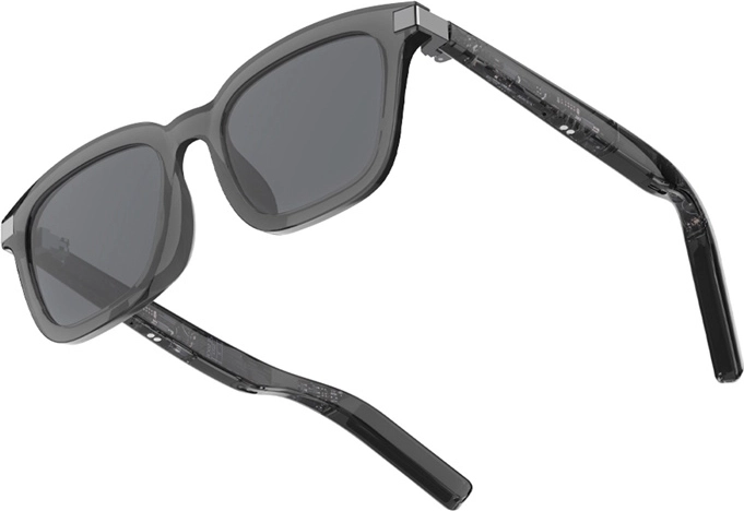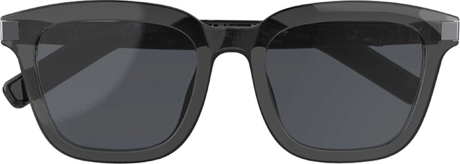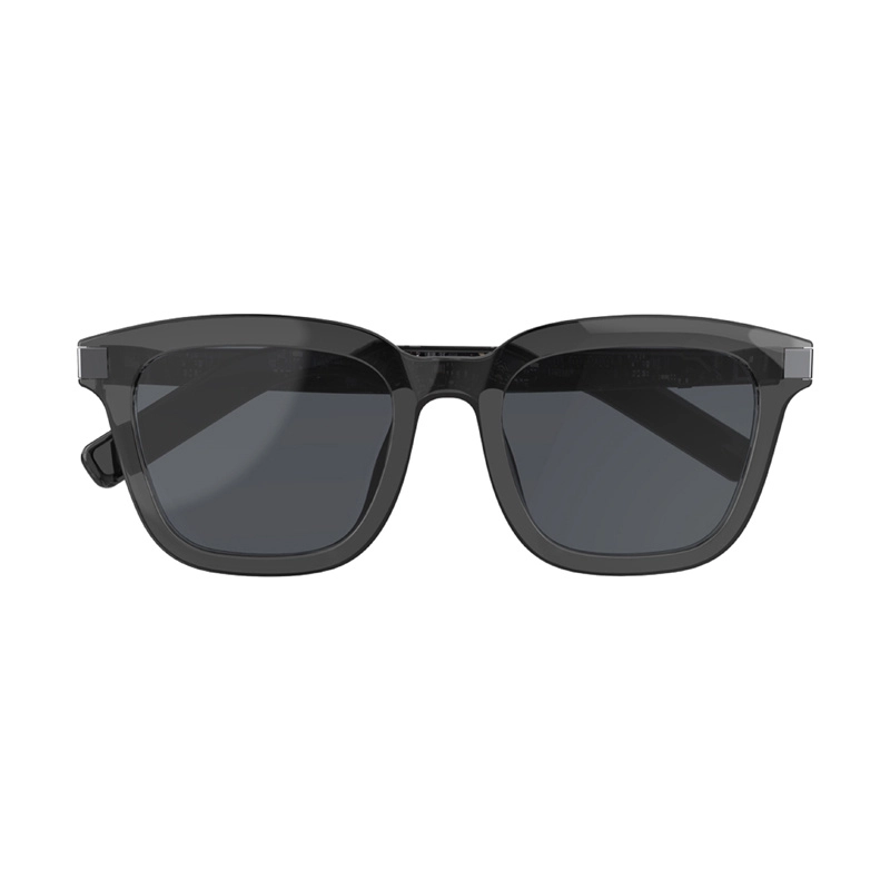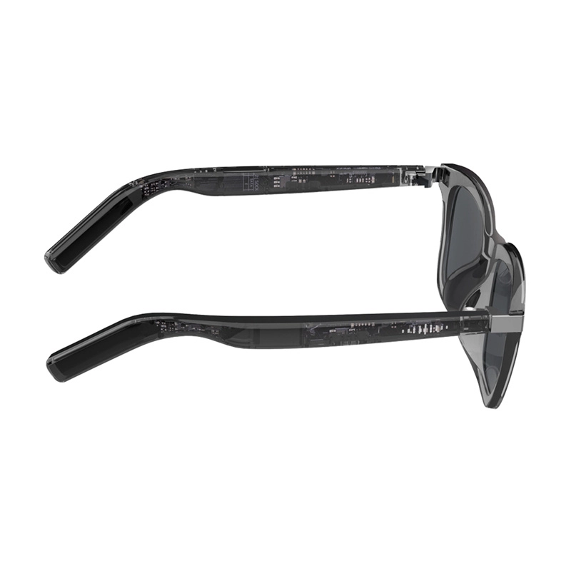 Lenses made of durable PC material reliably block UV radiation, and sound can be switched between indoor and outdoor modes for optimal listening. Semi-transparent, robust temples with visible electronics underscore the modern look, while quality hinges and a lightweight TR frame ensure all-day comfort.