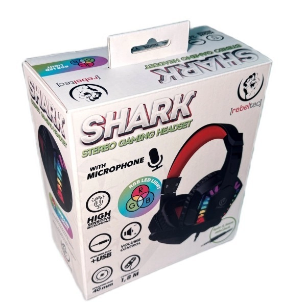Enjoy immersive sound and comfort with the REBELTEC Shark gaming headset. Premium 40 mm drivers deliver crystal-clear audio, pronounced dialogues, and dynamic bass. With wide compatibility (smartphones, consoles, tablets, laptops, and PCs), an integrated volume controller, a foldable microphone, and RGB backlighting, it’s an ideal choice for every gamer.