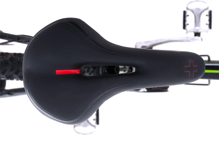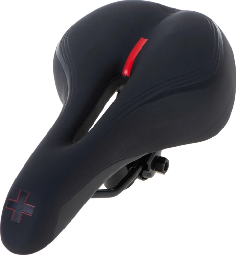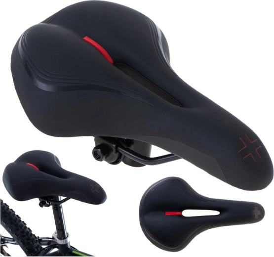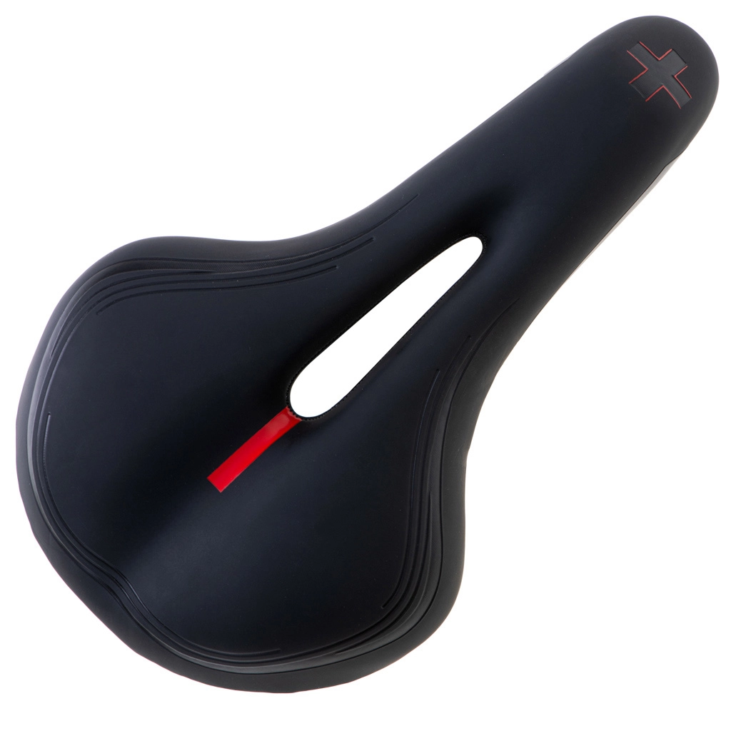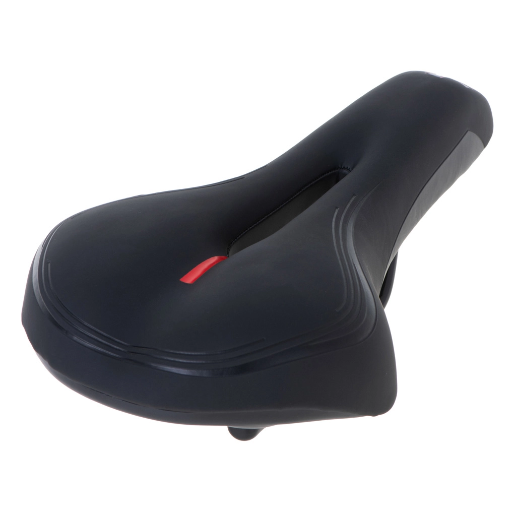 This sports saddle is designed for riders who want comfort and performance on both short and long routes. The elastic foam is neither too soft nor too hard—it provides stable support while damping vibrations. The anatomical center cutout reduces pressure, improves ventilation, and increases comfort on longer rides.
