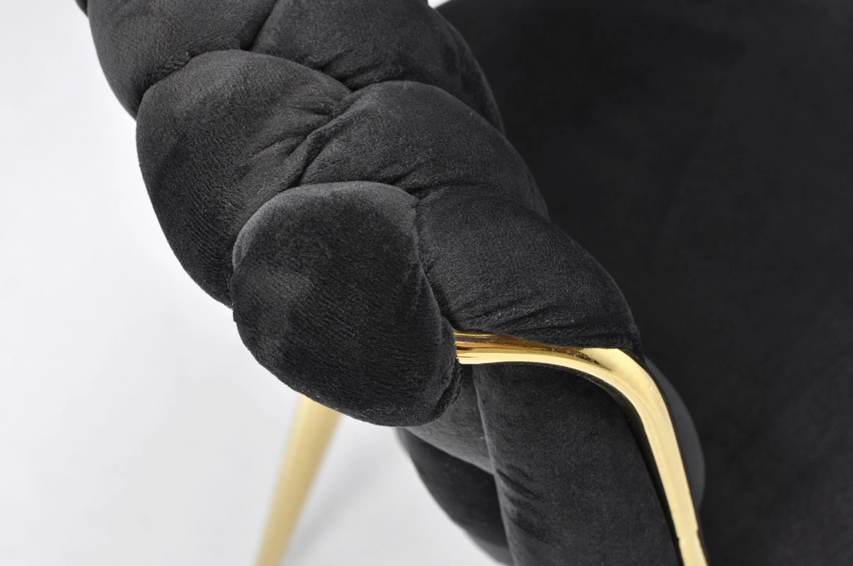 Thanks to the high-quality foam padding and comfortable seat height, the chair is ideal for everyday use. The sturdy steel base in a gold finish ensures strength and long service life, while the black-and-gold contrast underscores a luxurious interior atmosphere.