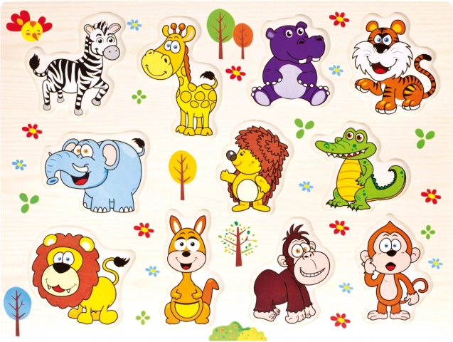 This large wooden safari animal puzzle will delight little explorers. The colorful insert pieces are easy to hold and help children practice motor skills and logical thinking. The stable wooden board keeps its shape and ensures comfortable assembling.