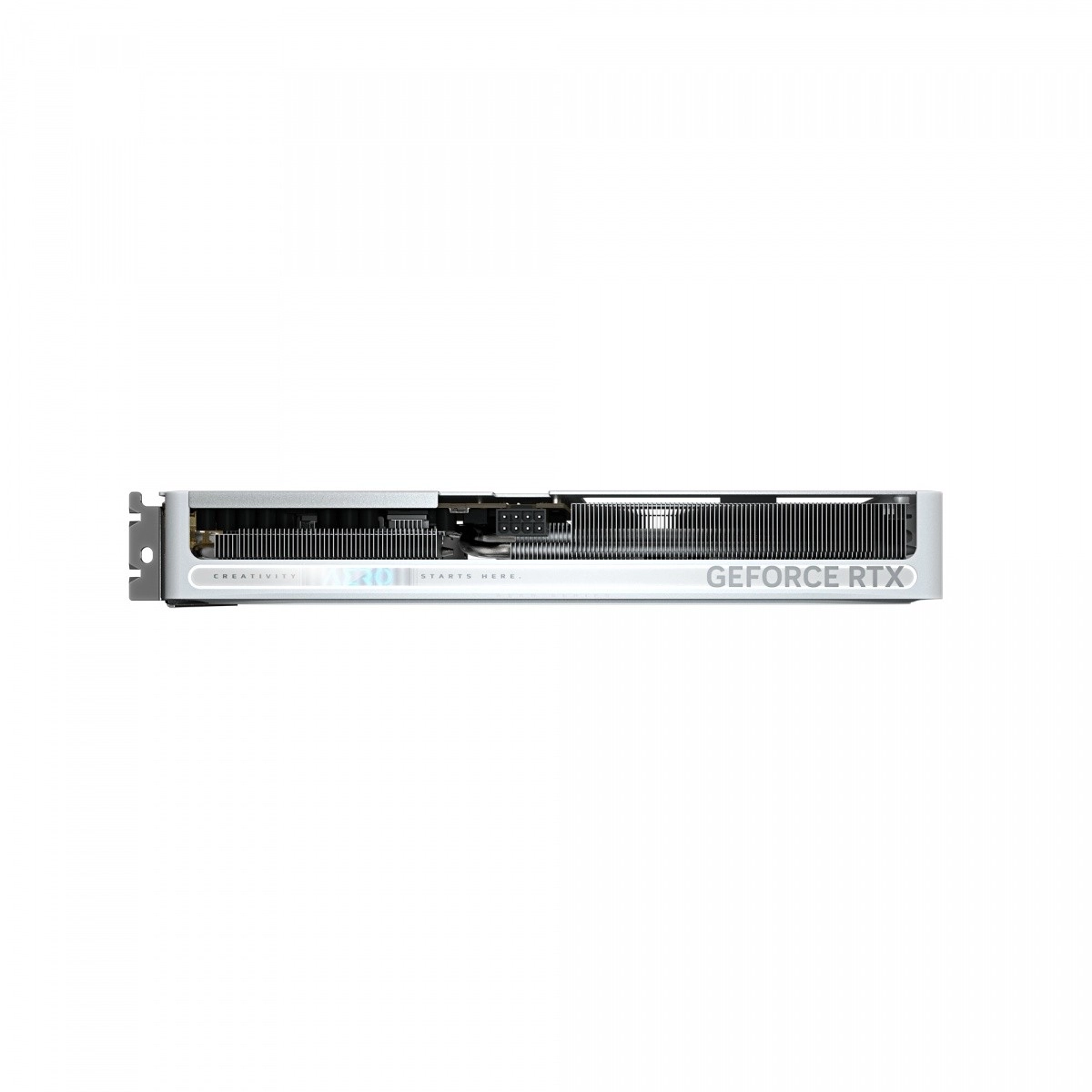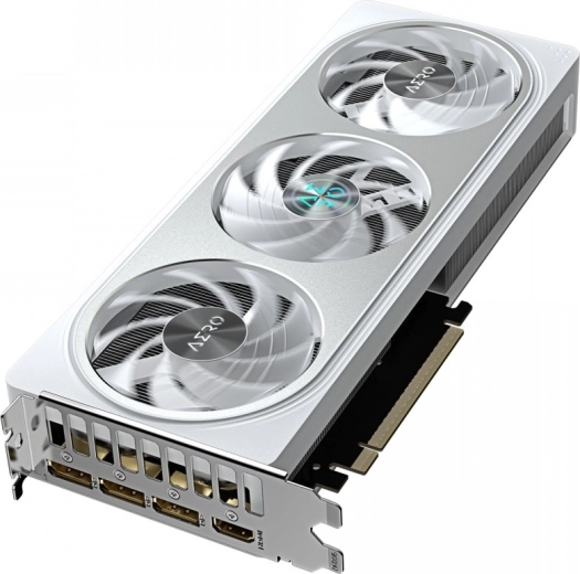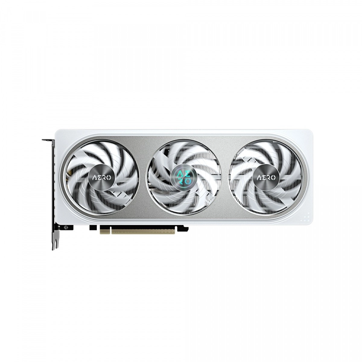 The white‑silver AERO finish fits perfectly into clean builds. A sturdy metal backplate increases card rigidity, improves heat dissipation, and protects the PCB.
