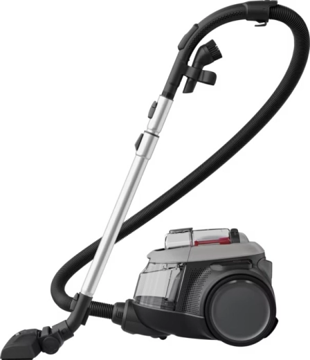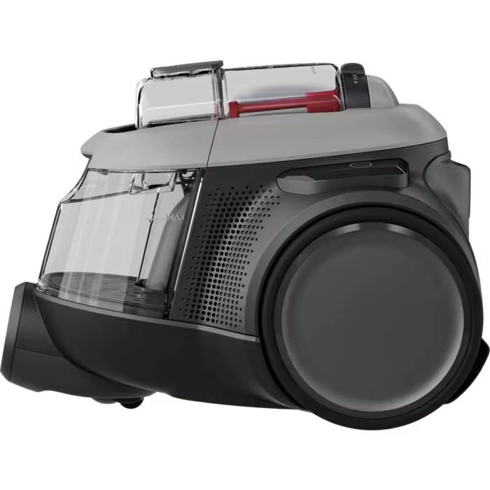 The advanced HEPA filtration system captures up to 99.99% of particles sized 0.3 µm (dust, mites, allergens), contributing to cleaner indoor air. Practical dustbin emptying in just 2 steps reduces the spread of dirt. Large rubber wheels ensure smooth maneuvering and floor-friendly movement.