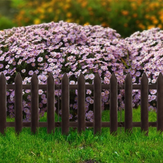 A practical and decorative garden edging fence in dark brown cleanly separates lawn from flowerbeds, paths, or ornamental shrubs. Thanks to modular panels, it easily adapts to straight and curved lines, creating a tidy and safe boundary with minimal maintenance.
