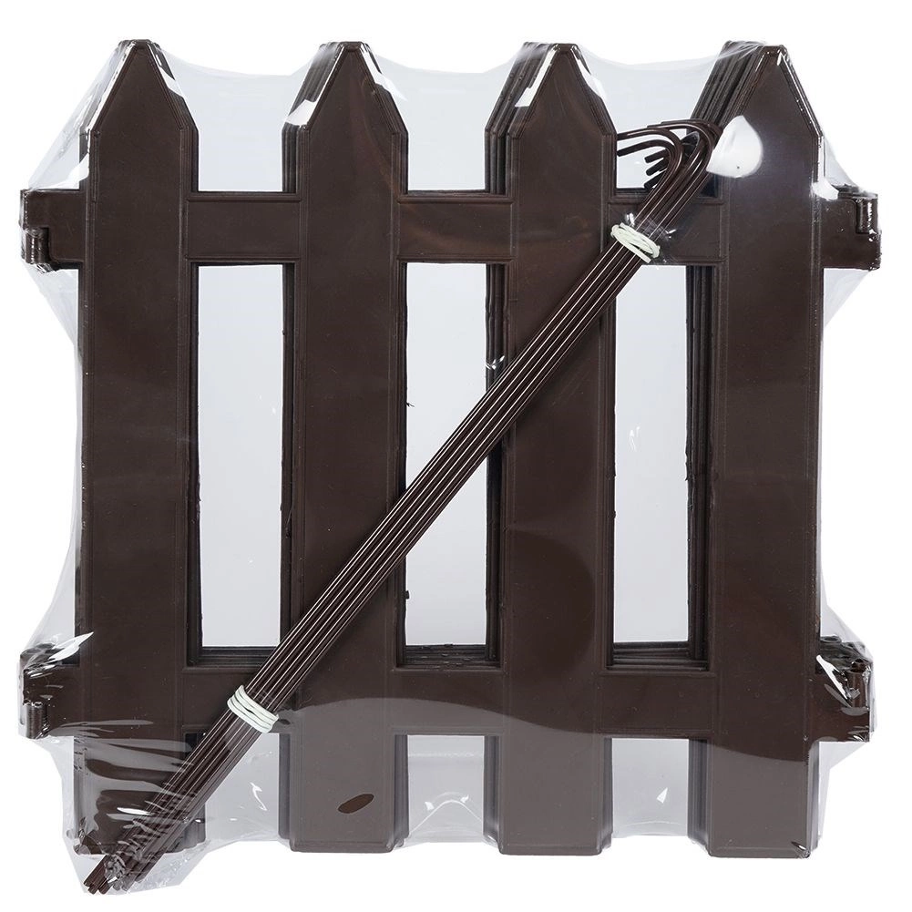 Decorative brown garden edging fence measuring 30 × 30 cm in a set of 10 creates an elegant border for beds and lawns. Easy to install, it is weather-resistant, modular and expandable, and thanks to its durable plastic construction with metal spikes it lasts for years. The total length when assembled is 300 cm, ideal for quick, attractive delineation of areas in the garden.