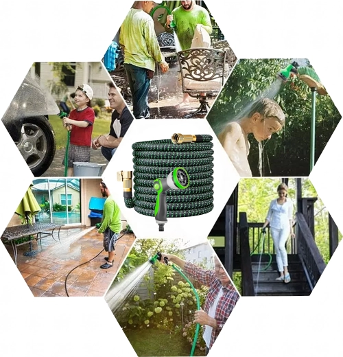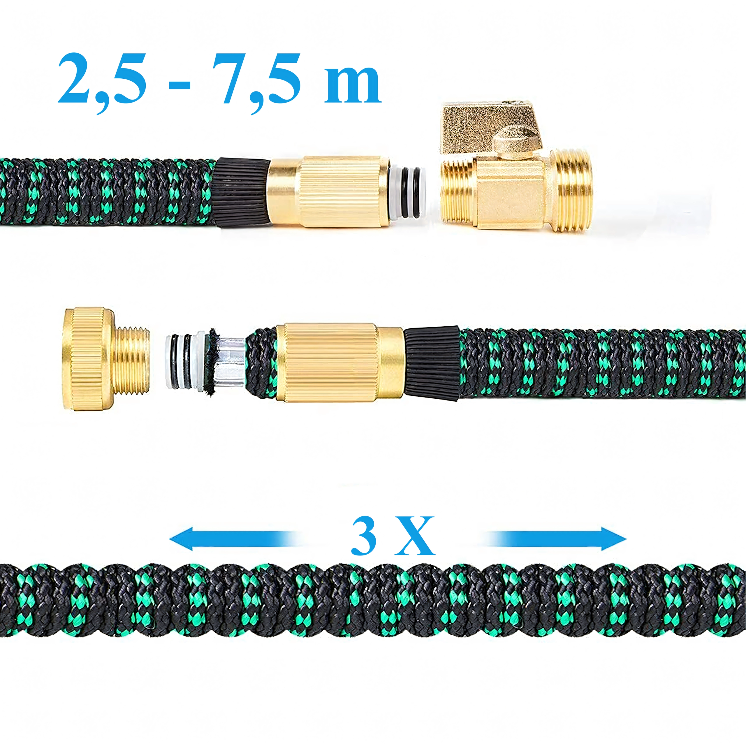 Expandable Garden Hose 2.5–7.5 m with Brass Quick Connectors and Multi-Function Spray Gun
