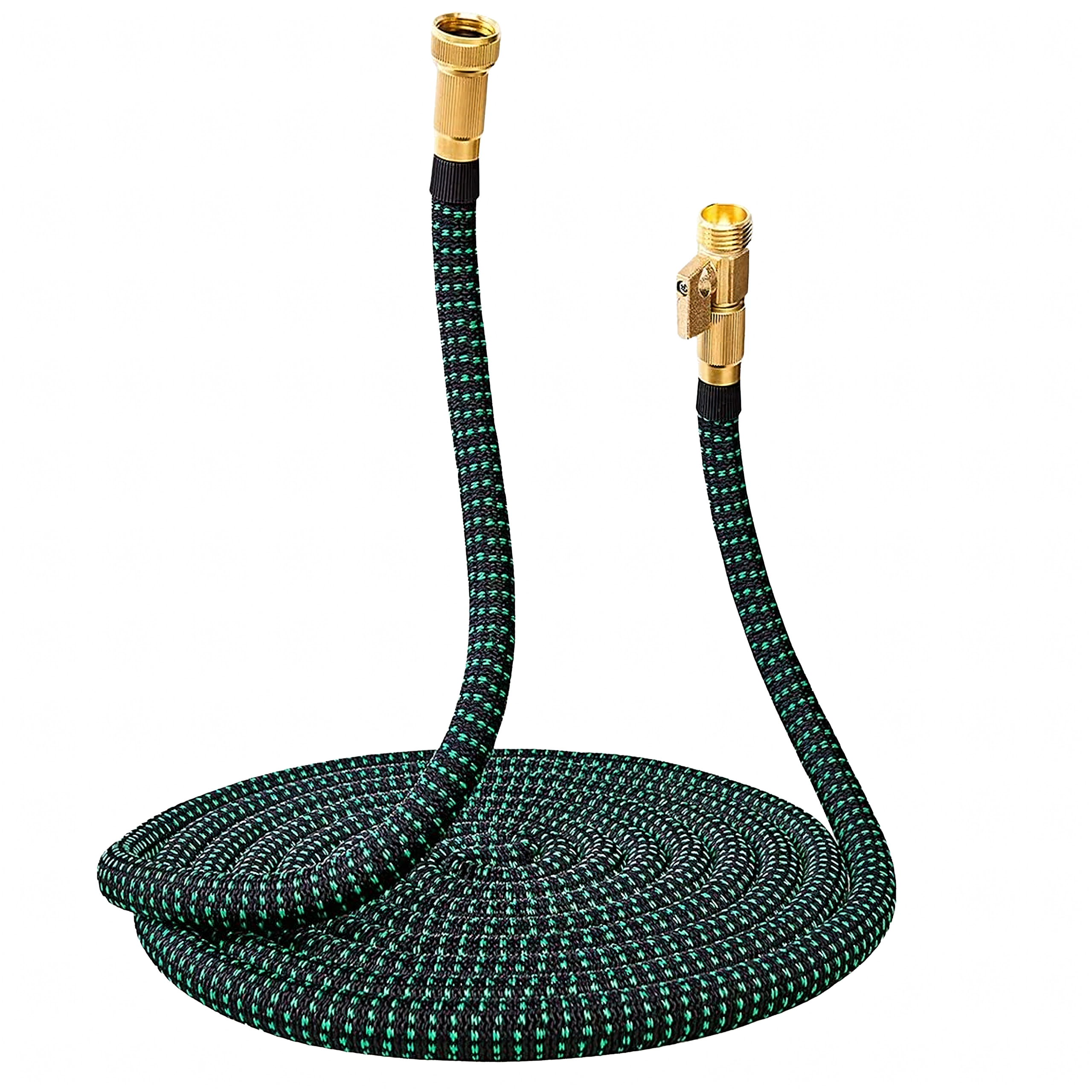 Sturdy brass fittings with an integrated valve ensure a leak-free connection and easy flow control directly on the hose.