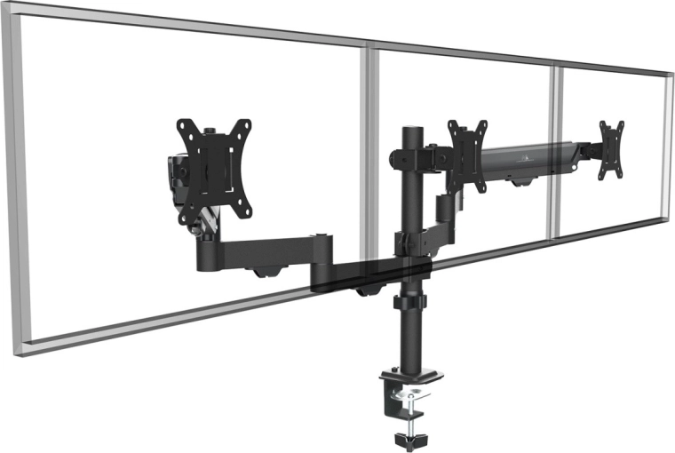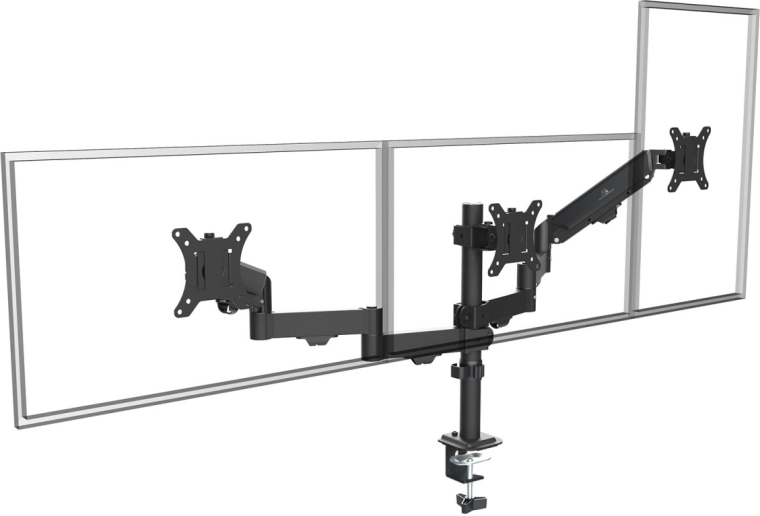 Create a clear and productive workspace: this triple mount for 17–27" monitors supports 2–8 kg on each arm and combines smooth adjustments with high stability. It’s ideal for gamers, developers, analysts, and content creators who need multiple side-by-side screens.