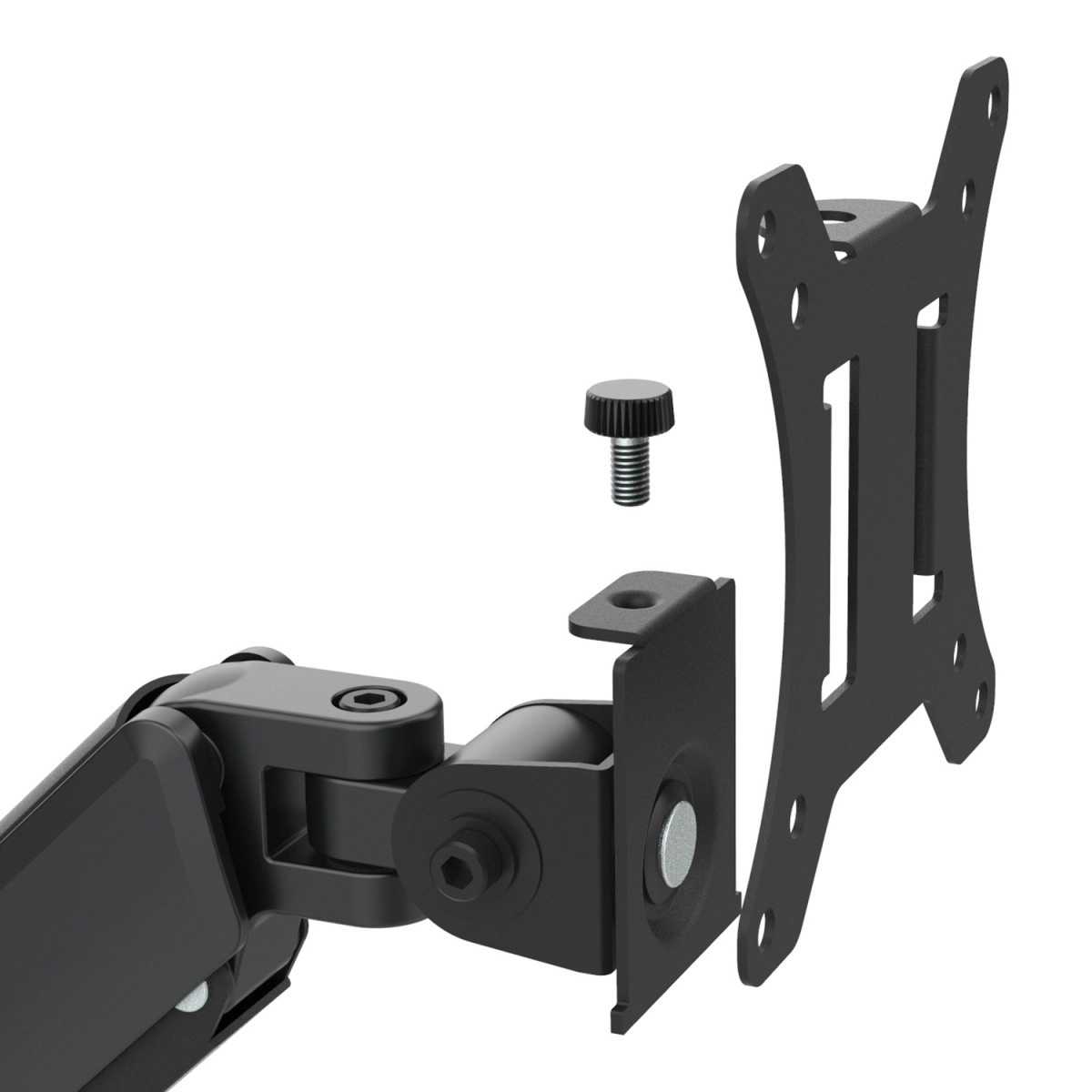 Articulated joints and the VESA plate enable easy tilting, swiveling, and quick mounting or removal of the monitor as needed.