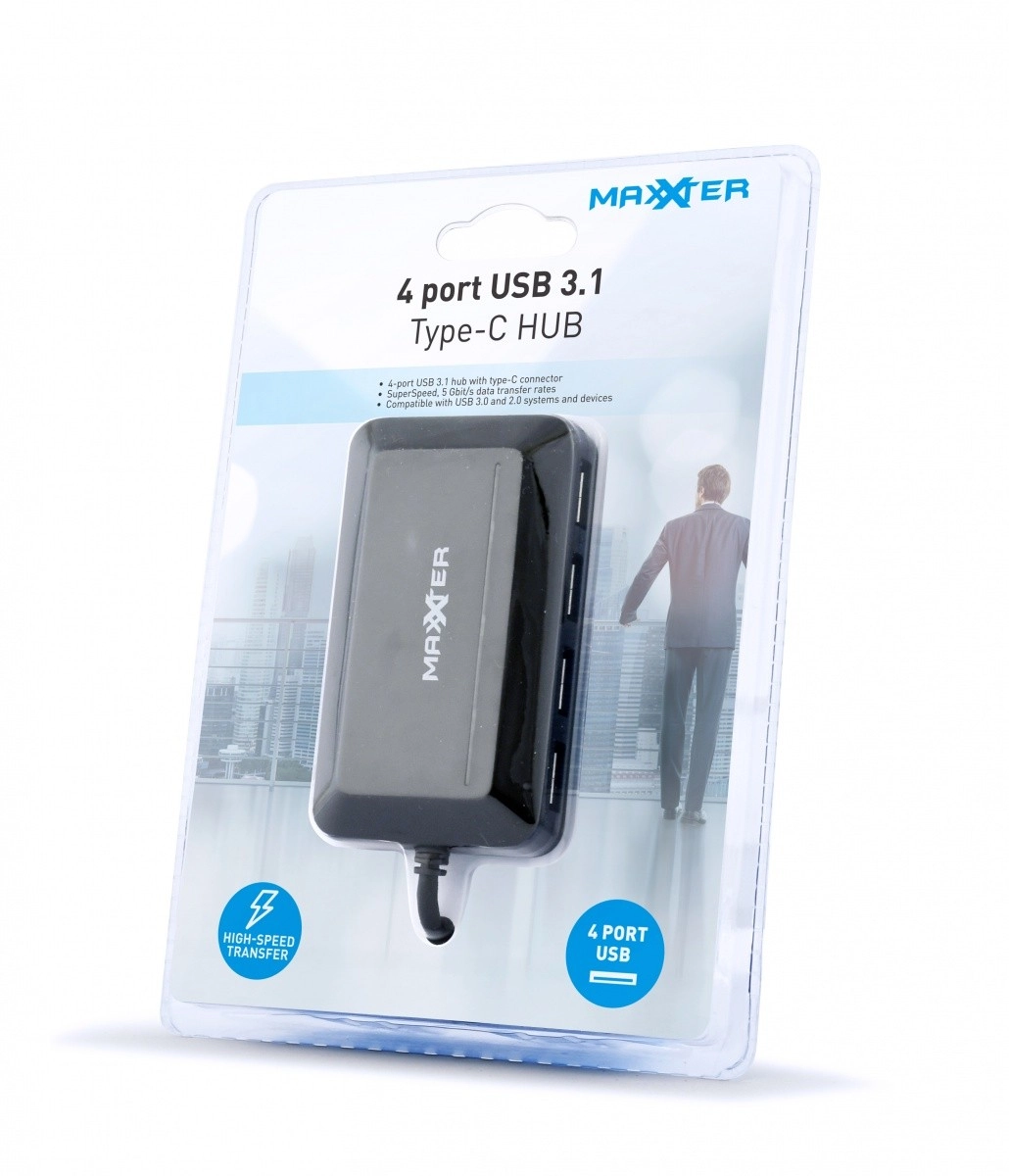 Expand your USB‑C laptop or desktop with a 4‑port USB 3.1 hub. This compact and lightweight splitter provides fast, stable connections for peripherals such as flash drives, keyboards, mice, card readers, or external drives.