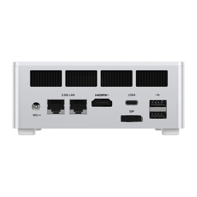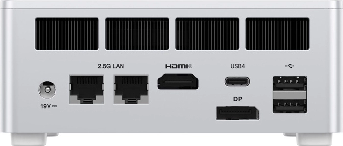 - 3.5 mm combo ×1, USB-A (USB 3.2 Gen 2) ×2, USB-A (USB 2.0) ×2, USB-C (USB4 40 Gb/s, Alt DP, PD input 65–100 W, PD output 15 W) ×1, DC 19 V, 2 × LAN 2.5 GbE, HDMI 2.1 ×1, DP 1.4 ×1