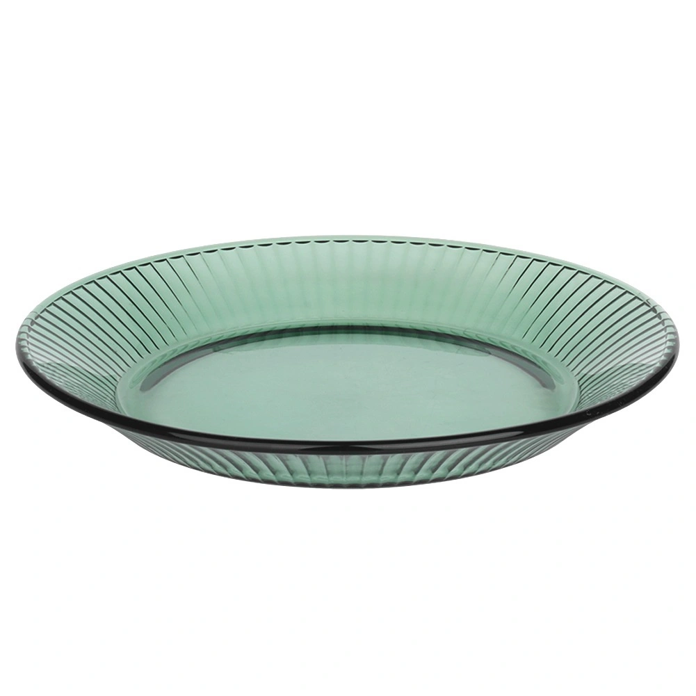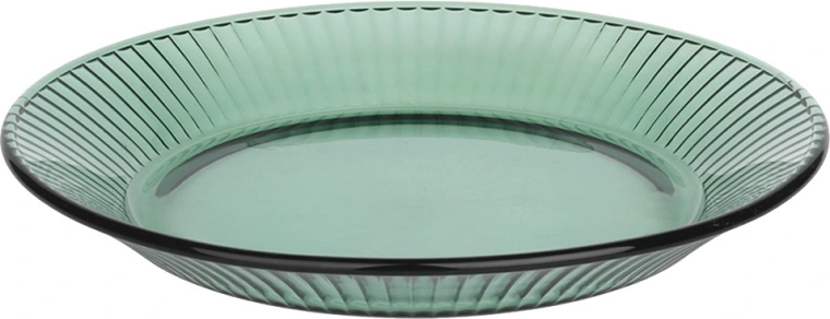 The elegant round plate from the VERDE range combines timeless design with practicality. Translucent green glass with decorative ridging adds a fresh accent to your table and highlights served desserts, fruit, and cold appetizers. The universal 20.5 cm size is perfect for home dining as well as professional food service.