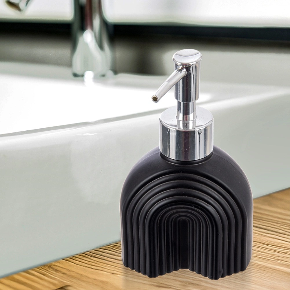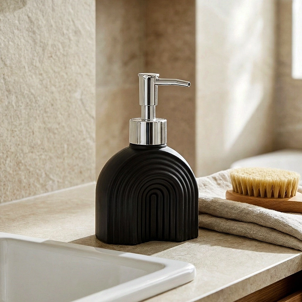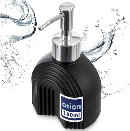 This practical dispenser for liquid soap or dishwashing detergent with a 180 ml capacity is ideal for everyday use. The matte black glass with a textured surface gives your sink or countertop a premium look, while the metallic glossy pump ensures smooth and precise dispensing.