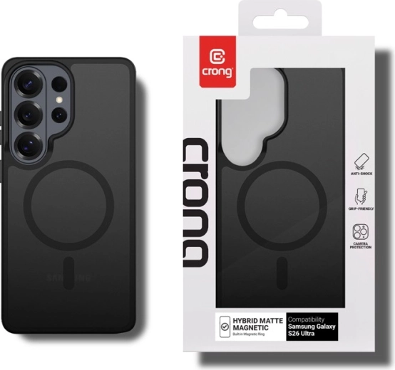 CRONG Hybrid Matte Magnetic Case with MagSafe for Samsung Galaxy S26 Ultra – Black