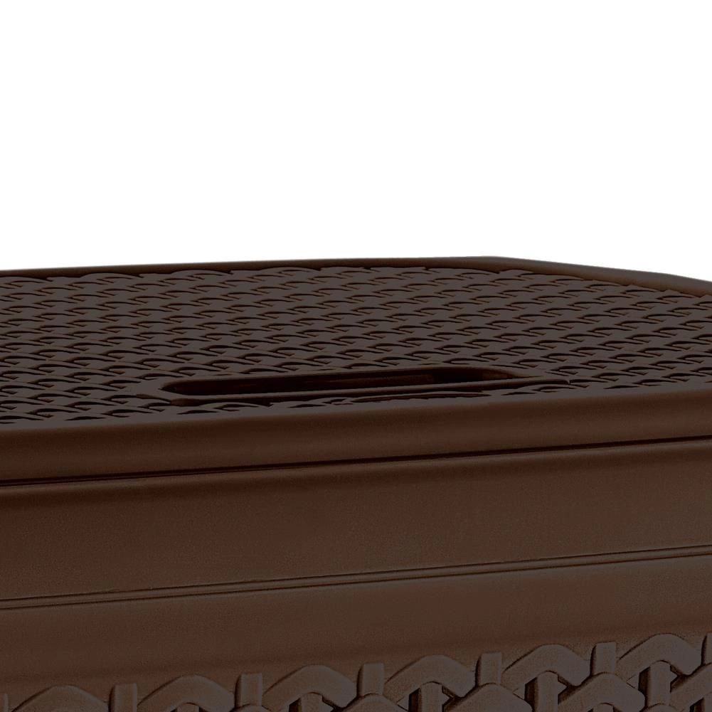 Keep your bathroom tidy with a spacious laundry basket that combines functionality and style. The closable lid hides the contents, the large opening makes loading laundry easy, and the perforated “woven” design provides airflow to prevent musty odors.