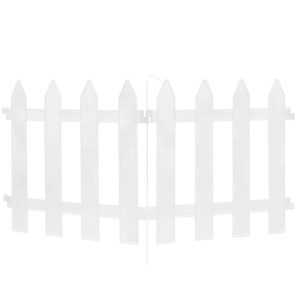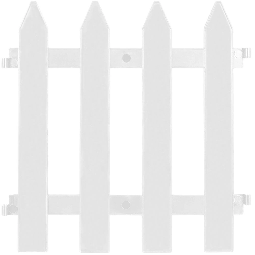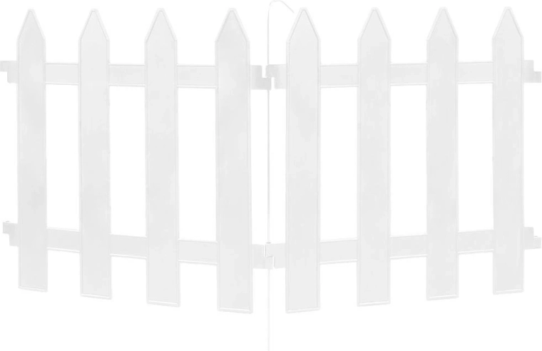 A decorative white garden edging fence creates an elegant border for beds, paths, or lawns. A set of 10 panels measuring 30 × 30 cm provides a total length of up to 300 cm. Durable plastic sections with metal connectors ensure easy assembly, long service life, and resistance to frost, UV radiation, and rain.