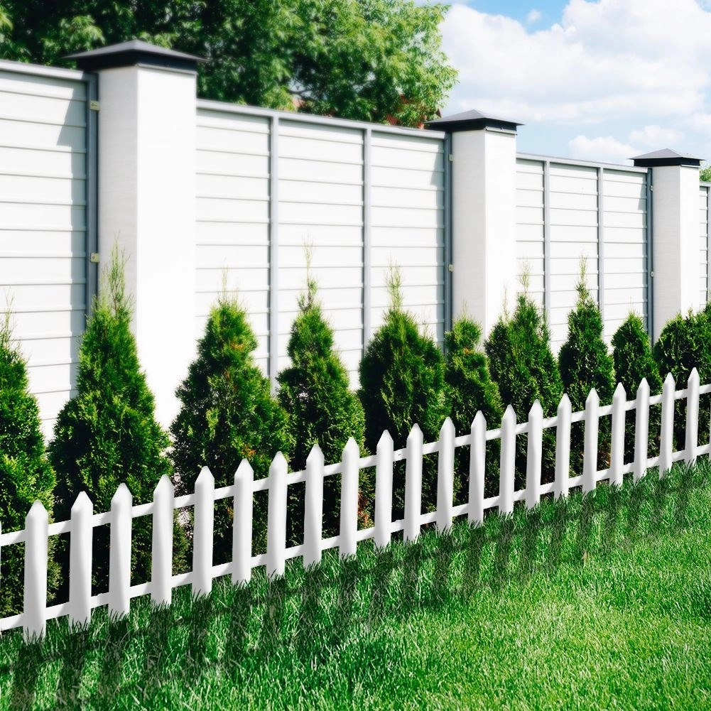 The fence is made of high-quality, weather-resistant plastic and reinforced with robust metal connecting parts for reliable stability. Thanks to its white color, it stands out beautifully against greenery and requires minimal maintenance.