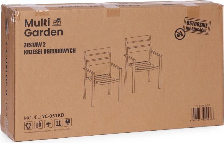 The MultiGarden set of 2 garden chairs is an ideal choice for morning coffee, afternoon relaxation, and evening gatherings with friends. The elegant grey finish and wood‑inspired texture look modern and pair easily with other outdoor furniture. Thanks to durable materials, the chairs are suitable for the terrace, balcony, and garden.