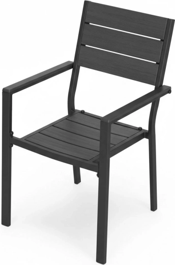 The powder‑coated steel structure is strong and corrosion‑resistant, while the HDPE seat and back ensure comfort, easy cleaning, and quick drainage after rain. A stable base, wide seat, and straight armrests support comfortable sitting even during longer use.