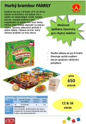 Box contents: game board, 165 question cards, 8 colored figures, spinning top, Czech and Slovak instructions.