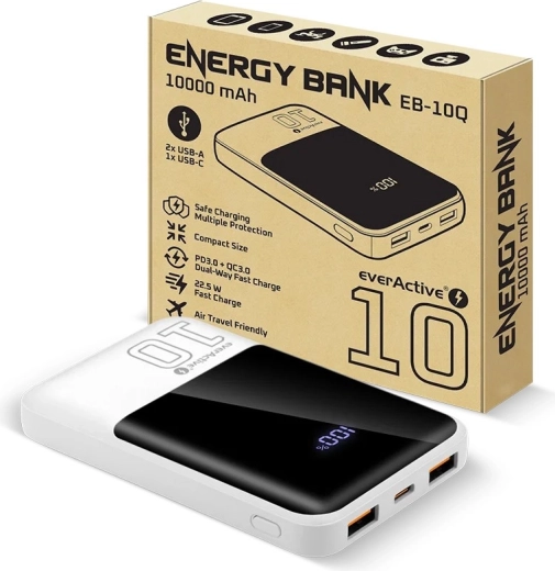 Enjoy freedom on the go with a 10,000 mAh power bank that combines high performance with mobility. Output up to 22.5 W ensures lightning-fast top-ups for smartphones, headphones, and tablets, while three ports (USB‑C and two USB‑A) let you charge up to three devices at once. The clear LED/LCD display shows the exact capacity in percent—no guessing and no unpleasant surprises.