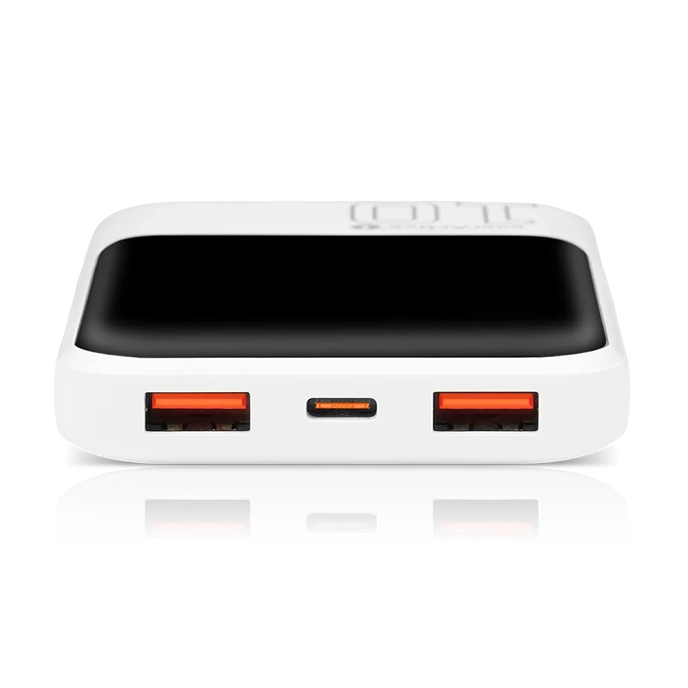 Charge up to three devices at the same time. USB‑C works as both input and output, while two USB‑A ports add universal compatibility for your accessories.