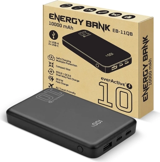 Enjoy reliable power on the go: this 10,000 mAh power bank with up to 20W via USB‑C quickly and safely charges modern smartphones, tablets, and gaming consoles. The slim body (about 17 mm) and light weight around 186 g make it ideal for a pocket or waist bag, while the precise LCD display shows remaining capacity in percentages.