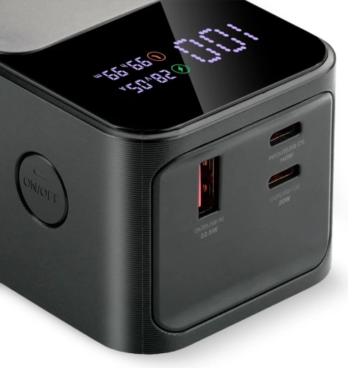 This premium power bank is engineered for maximum flexibility and performance. The main USB‑C (C1) port outputs up to 140 W even when charging other devices at the same time, powering laptops and power‑hungry electronics without compromise. A total output of up to 162.5 W ensures rapid replenishment for multiple devices at once.