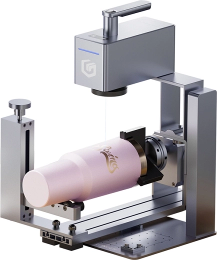 Versatile use and flexibility – the 12 W blue laser cuts wood up to 10 mm and engraves wood, acrylic, leather, textiles, metals, and ceramics. The 0–360° head adjustment makes it easy to mark mugs, bottles, and irregular shapes. The compact body (220 × 162 × 304.5 mm, 3.57 kg) is ideal for the workshop or on the go; the 100 × 100 mm work area can be expanded to 100 × 300 mm with optional accessories.