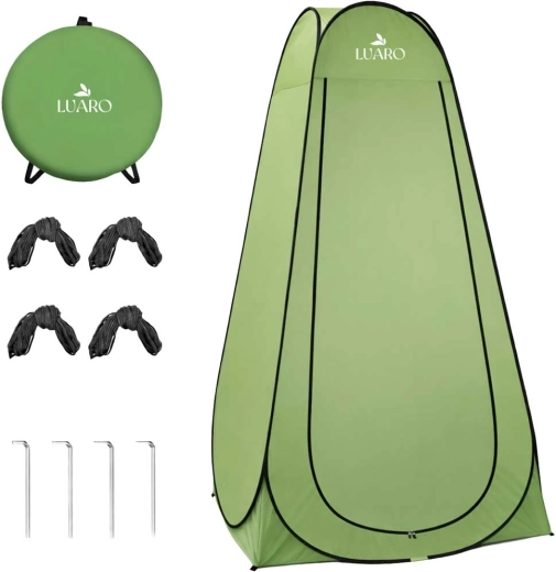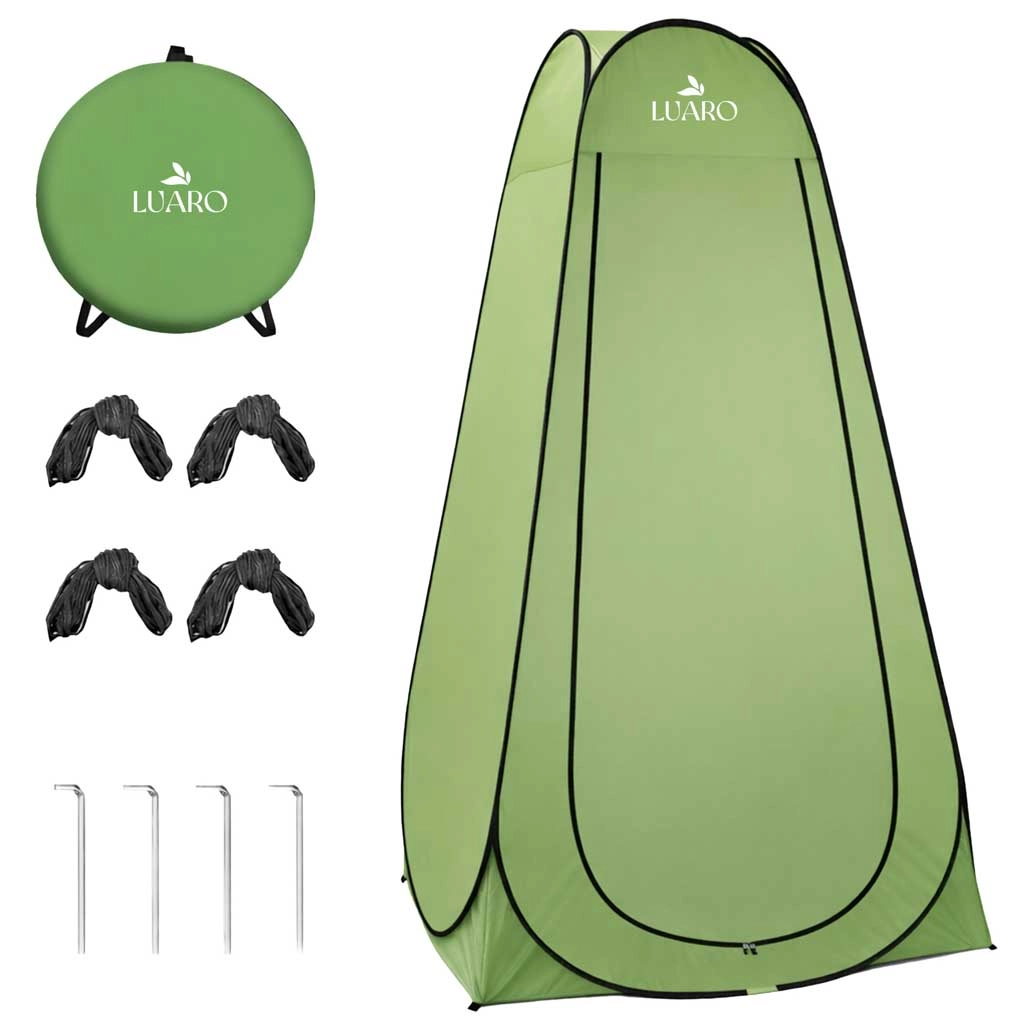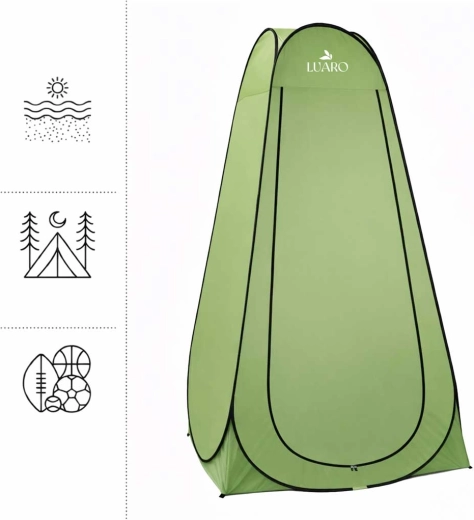 The practical and mobile LUARO pop-up tent provides an instant private cabin for changing, showering, or a toilet at the beach, campsite, or festival. Thanks to its self-deploying construction, you can set it up in seconds; it is lightweight, wind-resistant, and easy to carry in the included bag.