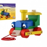 Wooden pull-along train with construction parts