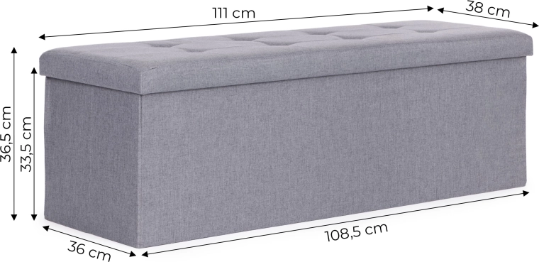The practical and elegant ModernHome storage bench measuring 111 × 38 cm combines comfortable seating with a spacious storage compartment. Thanks to its sturdy MDF construction, soft upholstery, and easy folding, it suits the living room, bedroom, hallway, and kids’ room. Load capacity up to 80 kg.