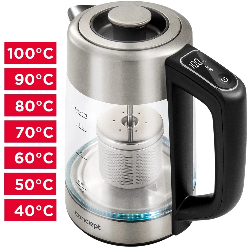 Glass electric kettle with temperature control CONCEPT RK4190 Tea Fusion 1.7 l