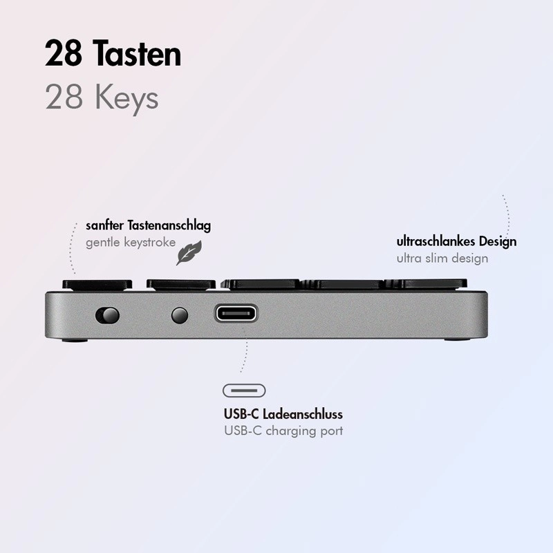 This slim numeric keypad boosts your productivity when working with spreadsheets and forms. Thanks to Bluetooth 5.0, it connects quickly and reliably to your laptop or PC without a USB receiver. Its compact design is easy to carry and saves space on your desk.
