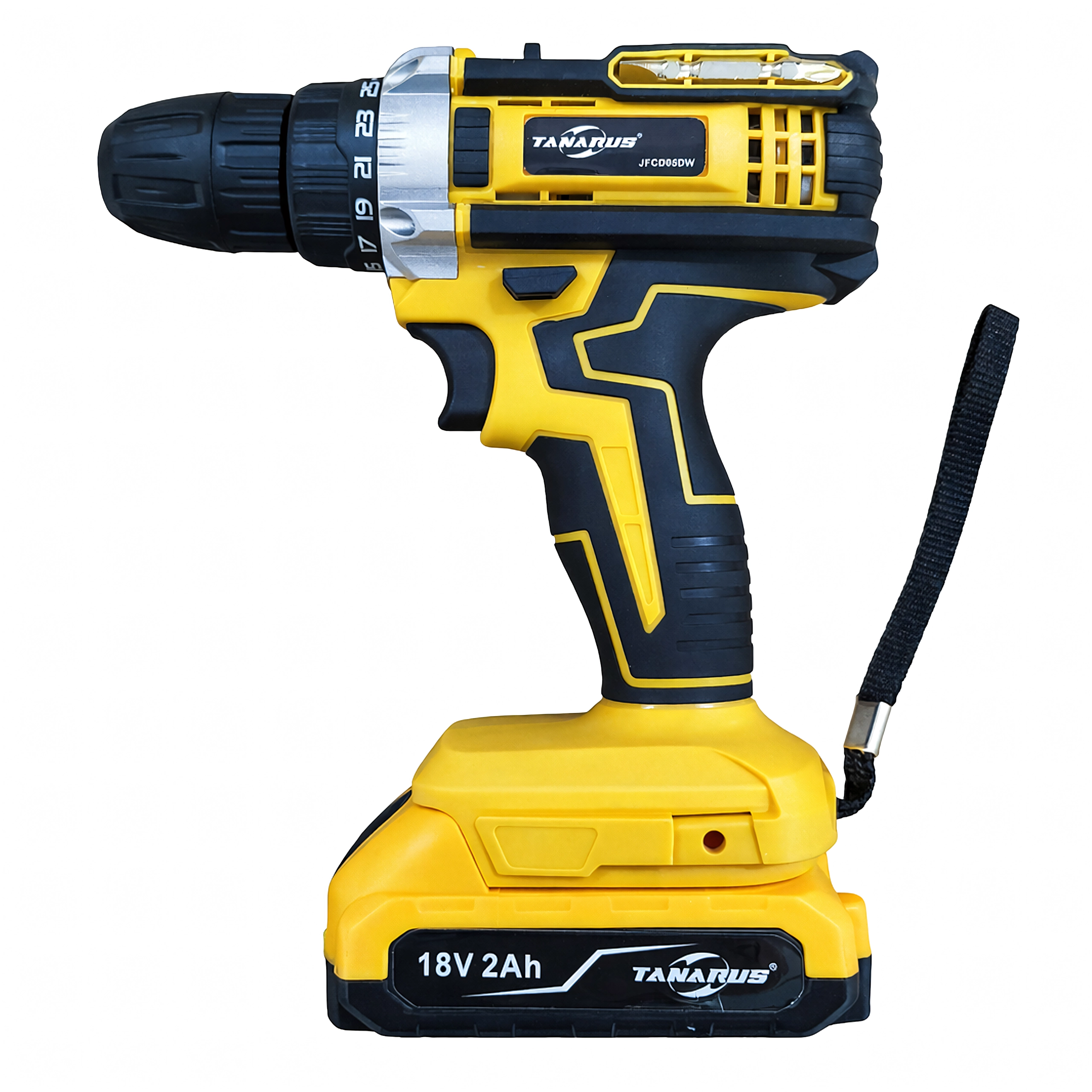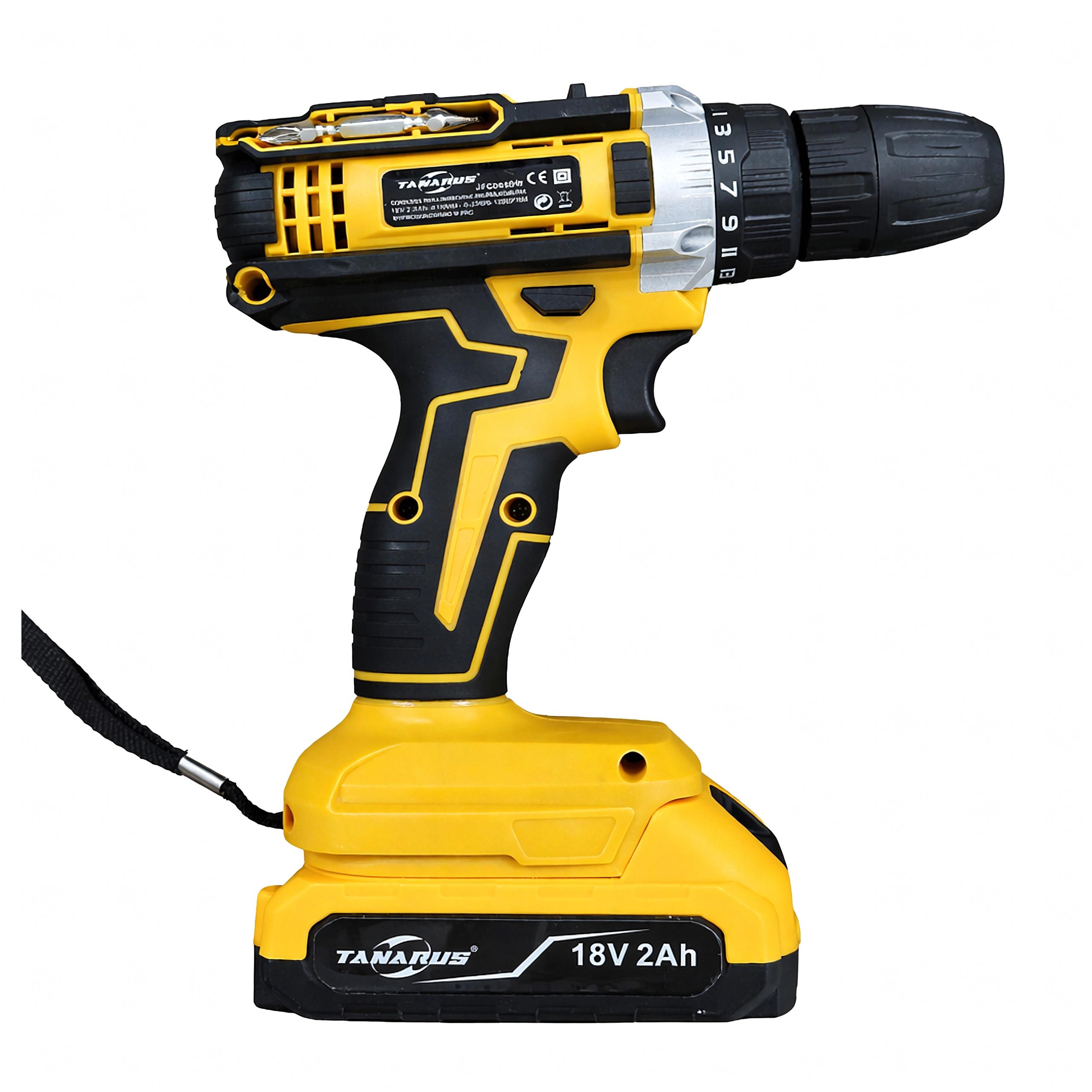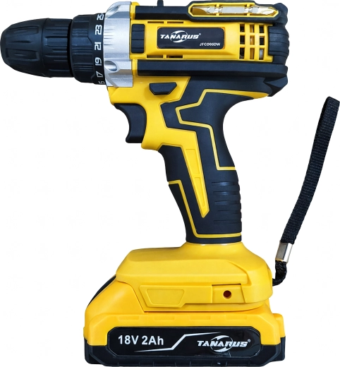 A reliable helper for the workshop, home and auto service. The 18 V cordless drill/driver with 18 V power and 2× 2 Ah battery capacity provides ample power for standard drilling in wood, plastic and metal, and precise screwdriving with adjustable torque. The keyless chuck speeds up bit and drill changes, while the LED light improves visibility in dark corners.