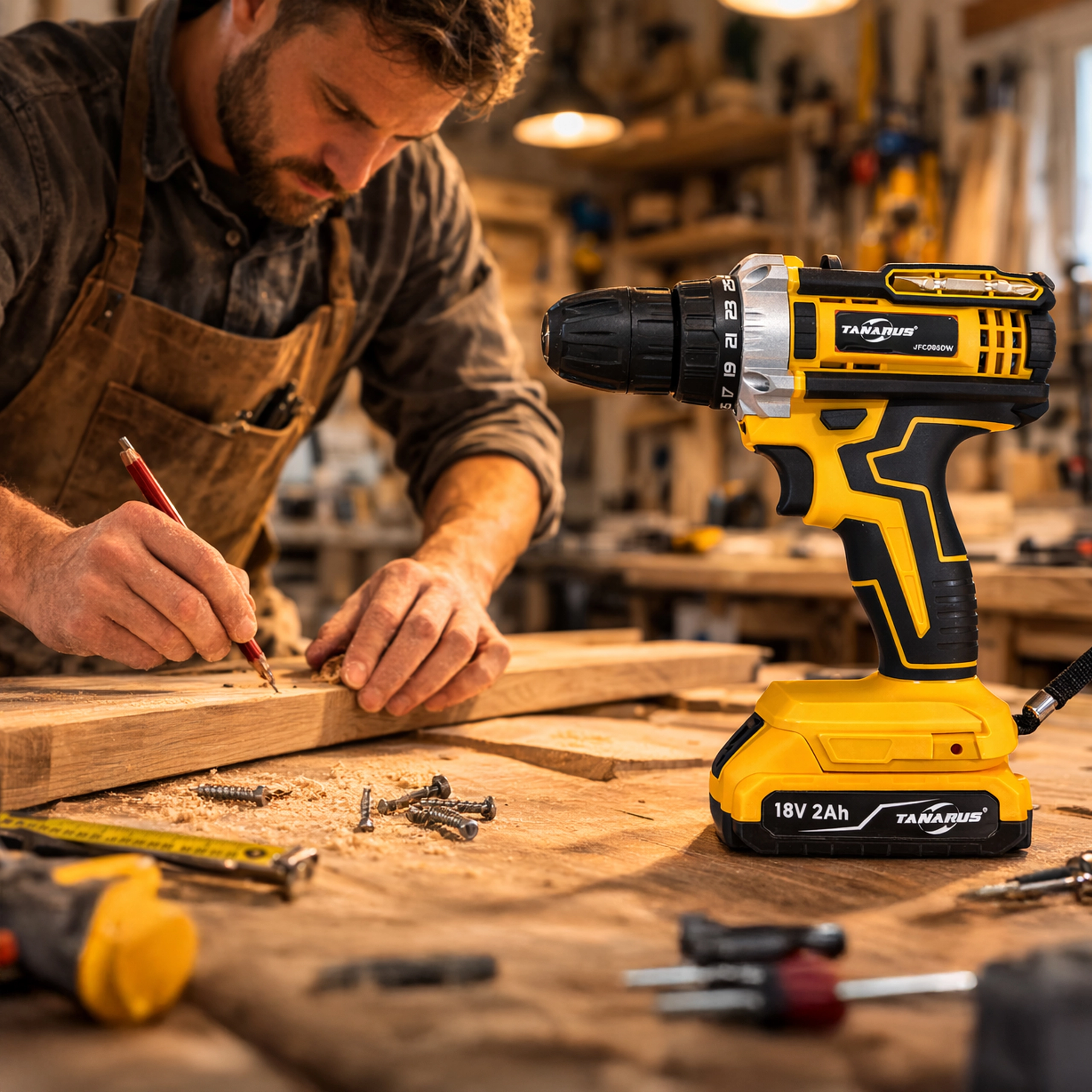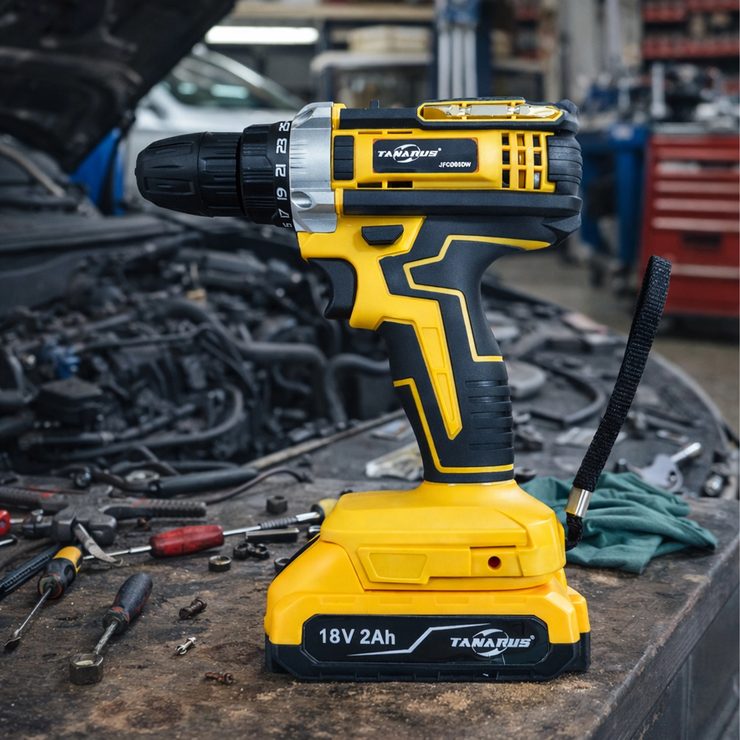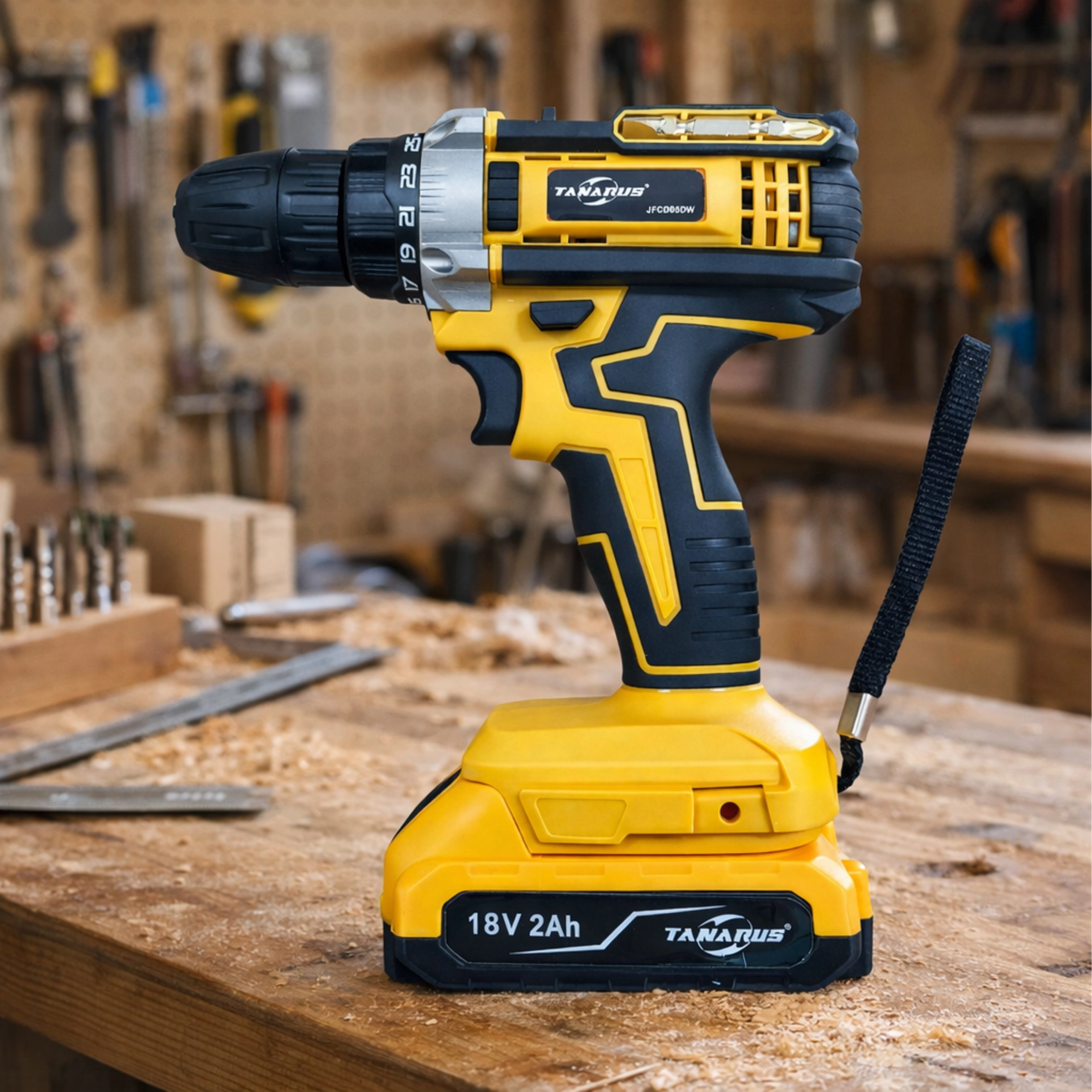 A reliable helper for the workshop, home and auto service. The 18 V cordless drill/driver with 18 V power and 2× 2 Ah battery capacity provides ample power for standard drilling in wood, plastic and metal, and precise screwdriving with adjustable torque. The keyless chuck speeds up bit and drill changes, while the LED light improves visibility in dark corners.