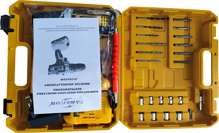The package includes a durable transport case and a wide range of accessories – drill bits, driver bits, sockets and a flexible extension for work in confined spaces. Two batteries allow smooth swapping and fewer breaks. An ergonomic, non-slip handle and low weight provide comfort during longer jobs.