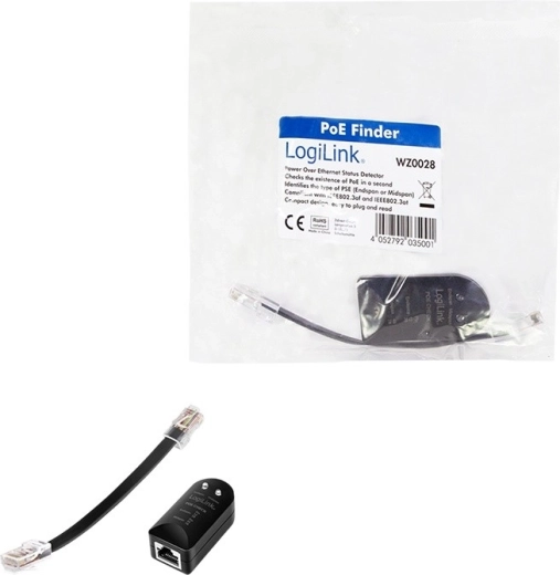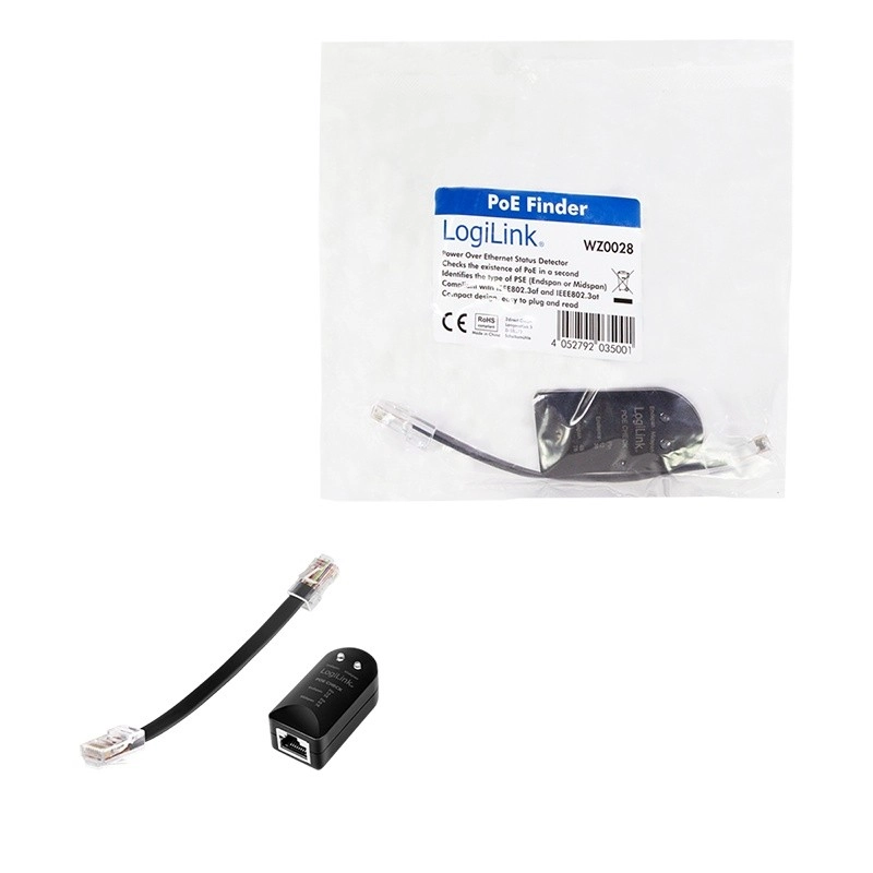 Save time when diagnosing networks with the universal LOGILINK cable tester. The device makes it easy to check wiring and continuity, quickly identify basic cabling issues, and safely verify the presence of PoE power. The practical PoE Finder precisely determines whether power is active on the end (1–2/3–6) or mid (4–5/7–8) pairs.