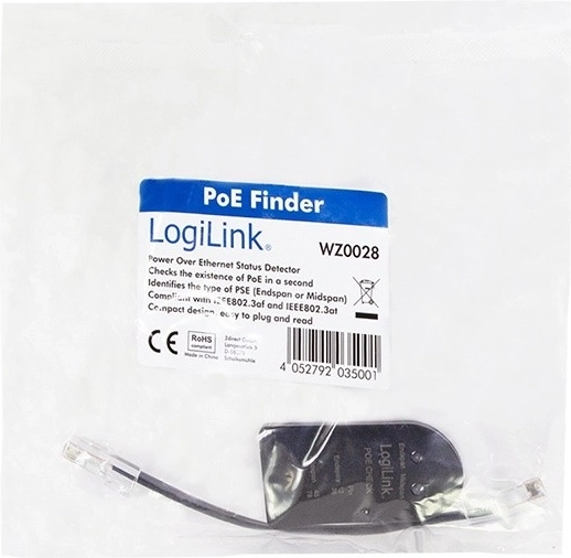 The professional cable tester from LOGILINK is an ideal choice for installers and service technicians who need to quickly detect wiring faults. It supports testing of Cat.5/6/7, coaxial and telephone cables, and interfaces RJ45, RJ11, RJ12, BNC. It includes a PoE Finder that safely detects whether a port or cable provides Power-over-Ethernet and on which pairs it is active.