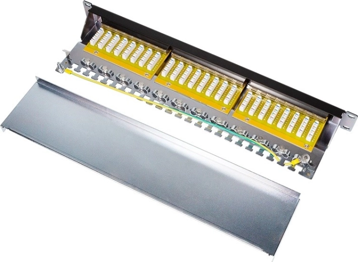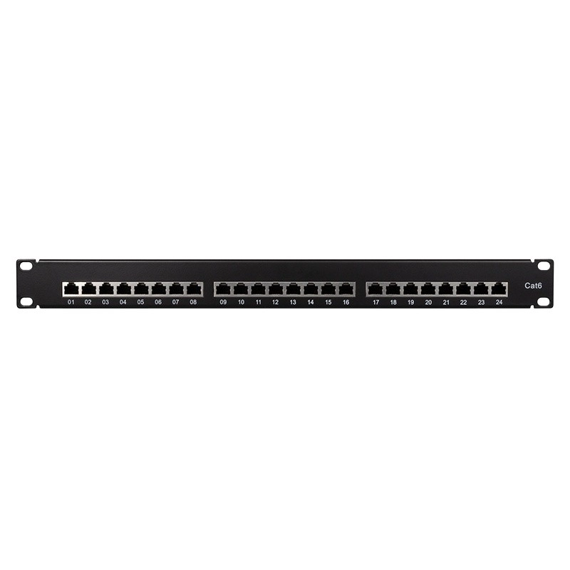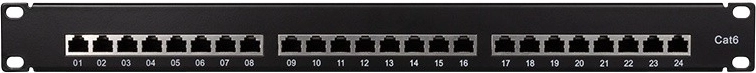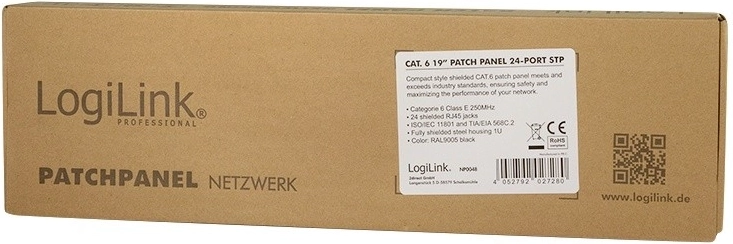 The shielded Cat6 Class E patch panel is designed for 19" racks and provides 24 numbered RJ45 ports for quick orientation and flawless management of network connections. The robust metal chassis and quality shielding ensure high durability, reduced interference, and maximum transmission stability in demanding installations.