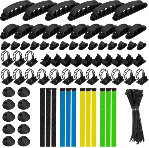 • Complete solution — a mix of ties, clips, and holders for different cable types.