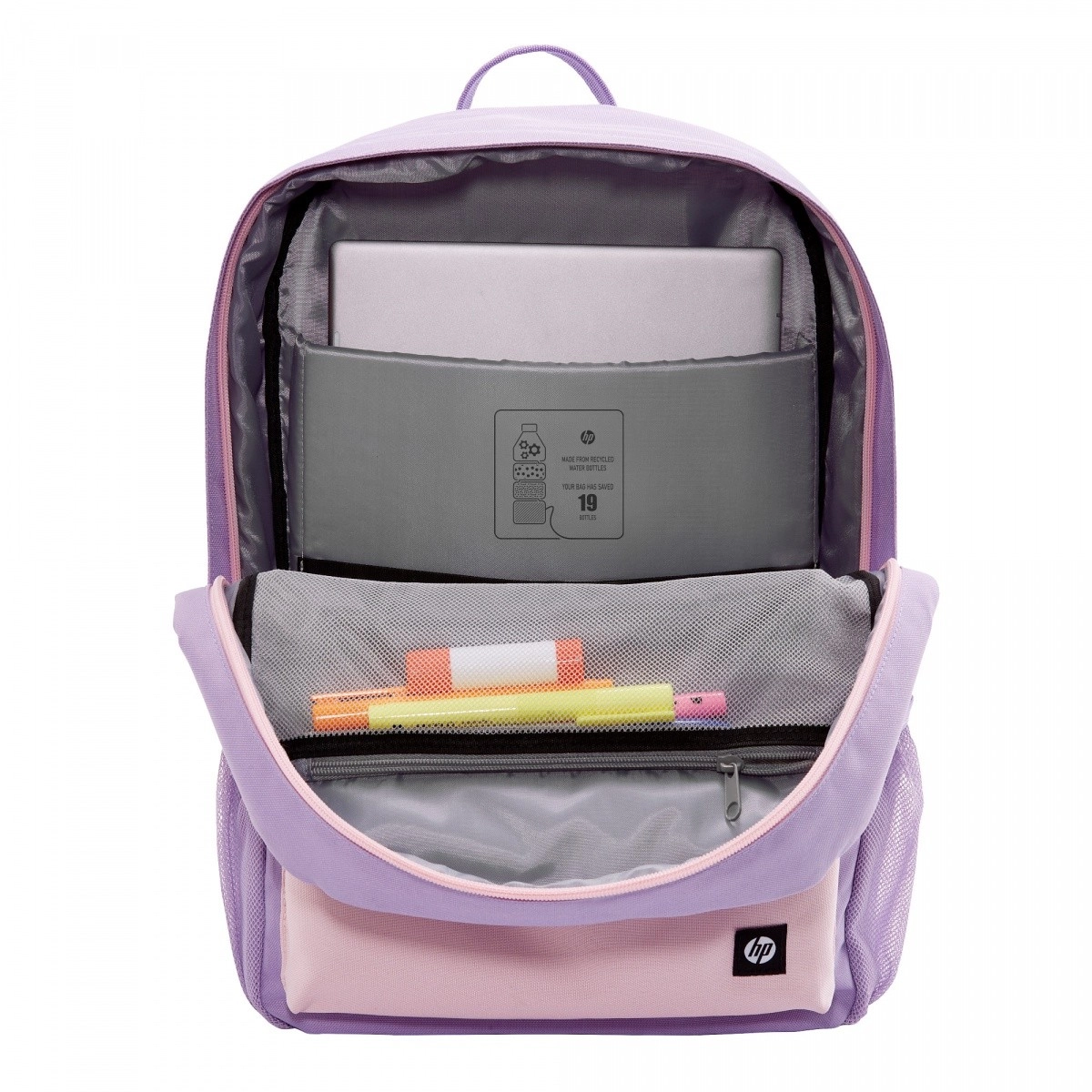 A stylish and practical HP Campus backpack in lavender offers secure storage for a 15.6" laptop, smart organization, and durable, water-repellent materials. With a lockable two-way zipper, padded back and straps, and a 17 L capacity, it’s ideal for school, the office, and travel.