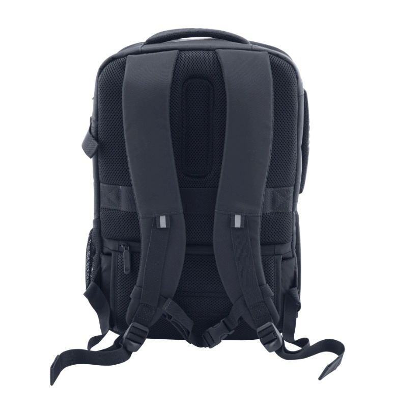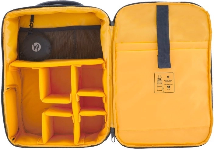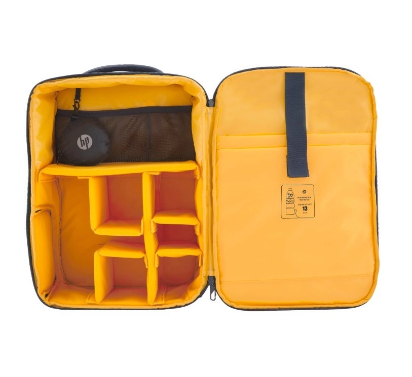 The exterior material is made from 100% recycled plastic—helping reduce waste (by approximately 13 plastic bottles) while giving you a reliable backpack for everyday use and travel.