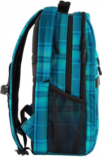 The modern Tartan Plaid check design stands out at first glance. The backpack is also environmentally friendly—made with up to 50% recycled materials (around 24 plastic bottles) without compromising durability or practicality.