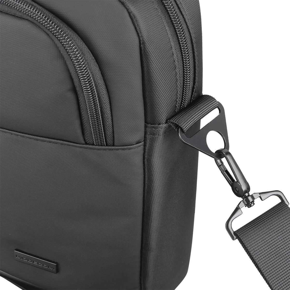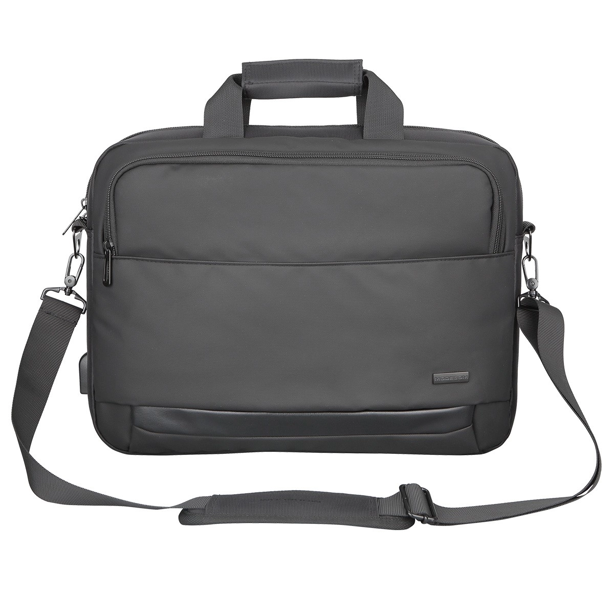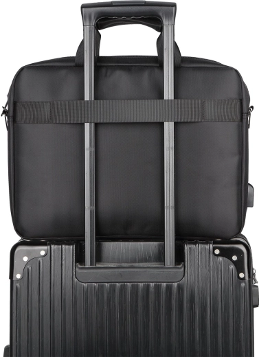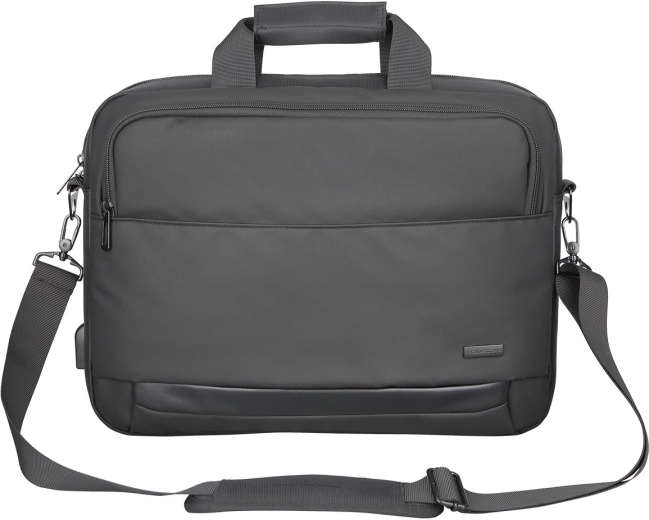 The elegant and durable MODECOM Porto bag for 15.6″ laptops combines light weight, a reinforced structure, and a practical USB port for charging on the go. It offers a padded main compartment, comfortable padded handles with a hook-and-loop wrap, a detachable and adjustable shoulder strap, and a luggage trolley strap. An external zip pocket and water-resistant polyester keep your devices and documents organized and protected.