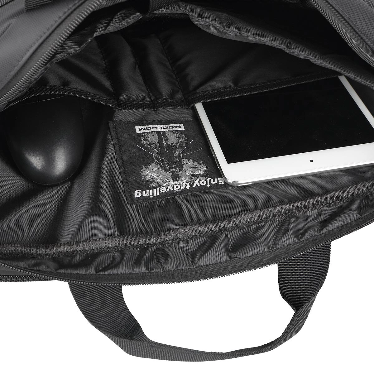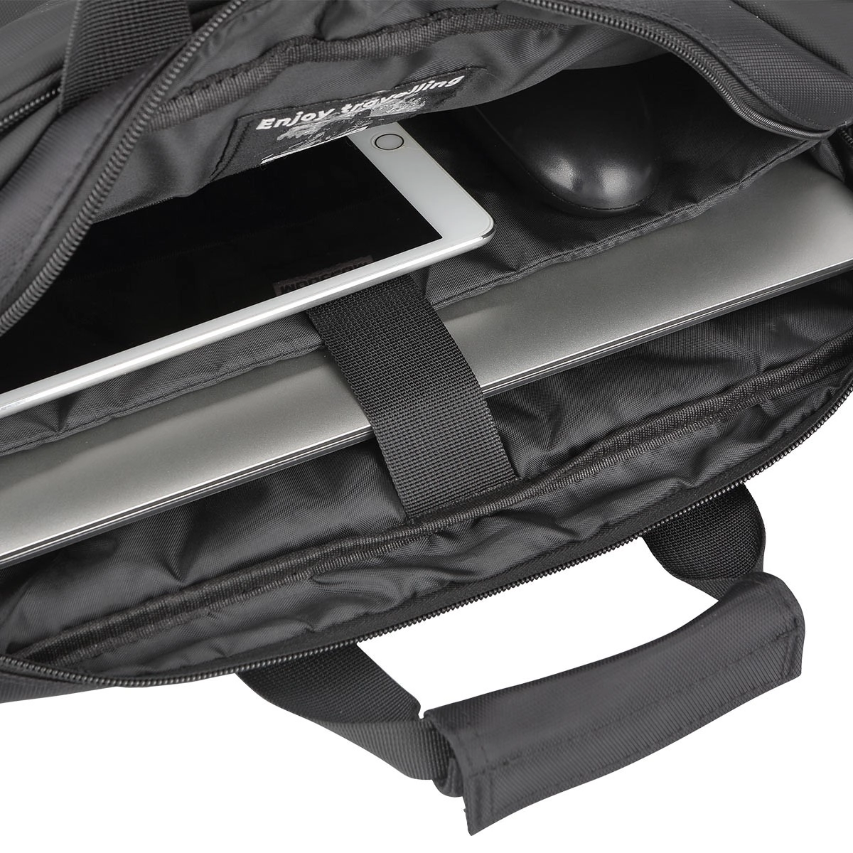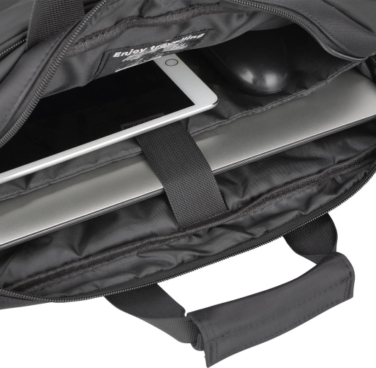 A spacious main compartment, two internal pockets, and a front zip pocket keep accessories in place. Reinforced walls and padding enhance device safety.