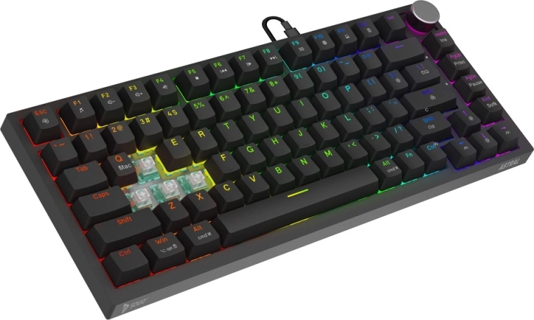 Discover the compact Astral magnetic keyboard with an 82-key layout, delivering lightning-fast response, a quiet, cushioned press thanks to its Gasket Mount design, and programmable RGB backlighting. Magnetic OUTEMU White Jade switches with a Hall sensor provide extreme precision and a long lifespan up to 100 million presses. Includes full N-key rollover and anti-ghosting for flawless combos and a multimedia rotary knob for instant volume control.